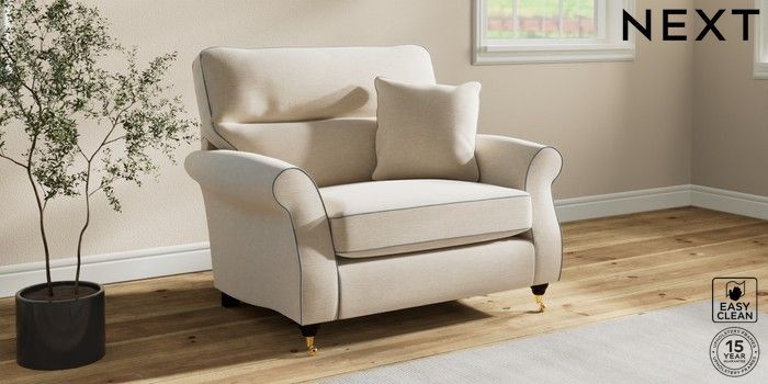 7.3.1 Buy Ashford Highback Snuggle Fine Chenille with Contrast Oyster and Mid Blue Castor - Dark from the Next UK online shop Click here to use our accessible website
