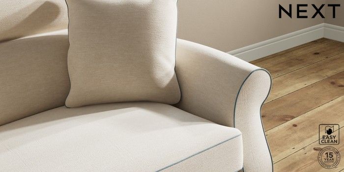 7.3.1 Buy Ashford Highback Snuggle Fine Chenille with Contrast Oyster and Mid Blue Low Turned - Light from the Next UK online shop Click here to use our accessible website