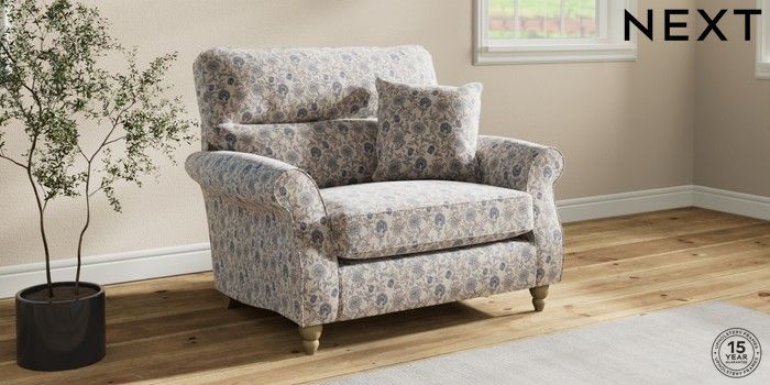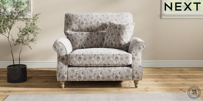 7.3.1 Buy Ashford Highback Snuggle Relaxed Linen Look Print Woodblock Floral Blue Low Turned - Light from the Next UK online shop Click here to use our accessible website