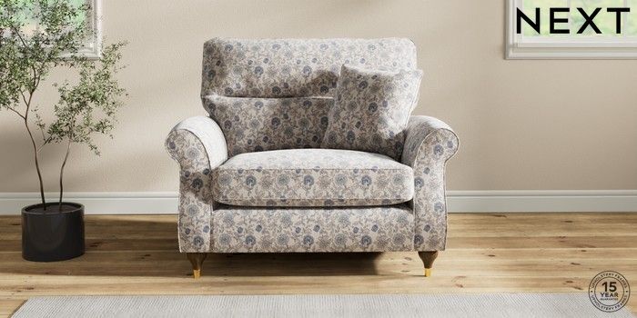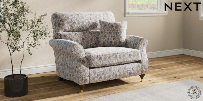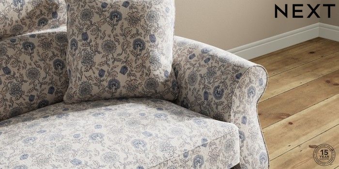 7.3.1 Buy Ashford Highback Snuggle Relaxed Linen Look Print Woodblock Floral Blue Modern Turned Metal Cap - Mid from the Next UK online shop Click here to use our accessible website