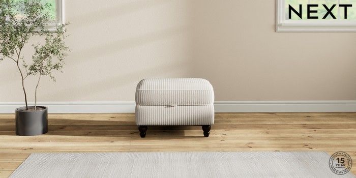6.12.1 Buy Ashford Highback Storage Footstool Chenille Stripe Natural Low Turned - Dark from the Next UK online shop Click here to use our accessible website