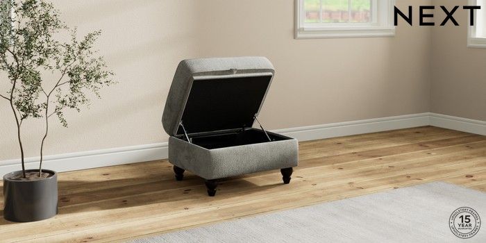 6.12.1 Buy Ashford Highback Storage Footstool Chunky Chenille Light Grey Low Turned - Dark from the Next UK online shop Click here to use our accessible website