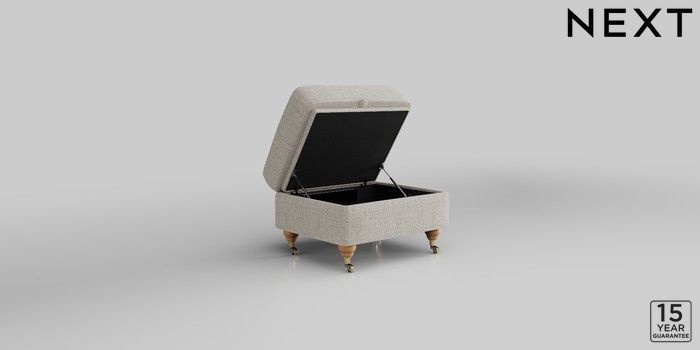 6.12.1 Buy Ashford Highback Storage Footstool Chunky Weave Dove Grey Castor - Light from the Next UK online shop Click here to use our accessible website