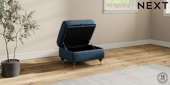 6.12.1 Buy Ashford Highback Storage Footstool Cotswold Chenille Dark Blue Castor - Mid from the Next UK online shop Click here to use our accessible website