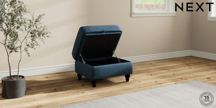 6.12.13 Buy Ashford Highback Storage Footstool Cotswold Chenille Dark Blue Low Turned - Dark from the Next UK online shop Click here to use our accessible website