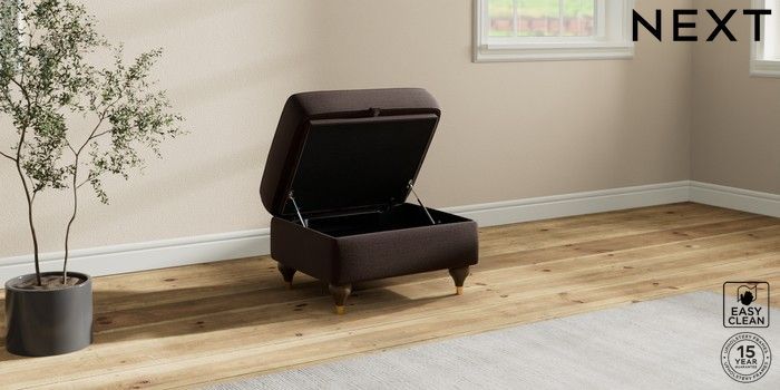 6.12.1 Buy Ashford Highback Storage Footstool Fine Chenille Easy Clean Chocolate Brown Modern Turned Metal Cap - Mid from the Next UK online shop Click here to use our accessible website