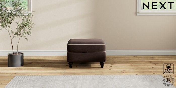 7.3.1 Buy Ashford Highback Storage Footstool Fine Chenille with Contrast Chocolate Brown and Oyster Low Turned - Dark from the Next UK online shop Click here to use our accessible website
