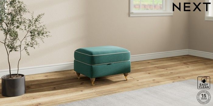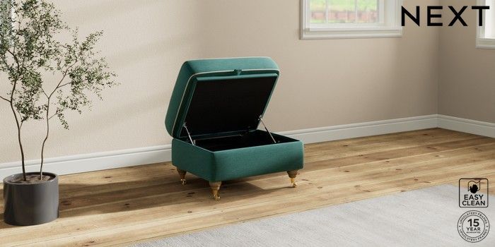 7.3.1 Buy Ashford Highback Storage Footstool Fine Chenille with Contrast Dark Juniper Green and Oyster Castor - Light from the Next UK online shop Click here to use our accessible website