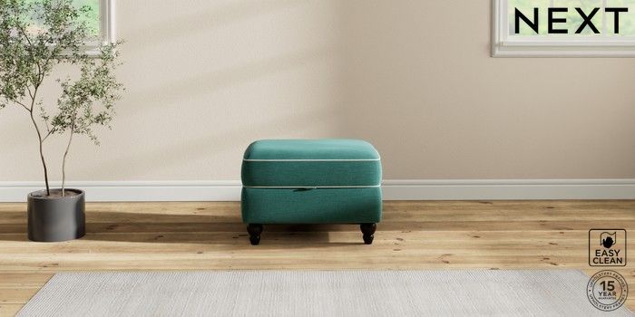 7.3.1 Buy Ashford Highback Storage Footstool Fine Chenille with Contrast Dark Juniper Green and Oyster Low Turned - Dark from the Next UK online shop Click here to use our accessible website
