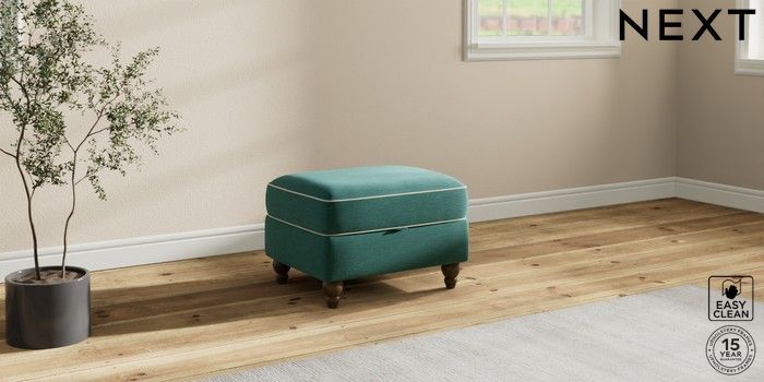 7.3.1 Buy Ashford Highback Storage Footstool Fine Chenille with Contrast Dark Juniper Green and Oyster Low Turned - Mid from the Next UK online shop Click here to use our accessible website