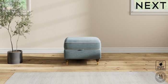 7.3.1 Buy Ashford Highback Storage Footstool Fine Chenille with Contrast Mid Blue and Oyster Castor - Mid from the Next UK online shop Click here to use our accessible website