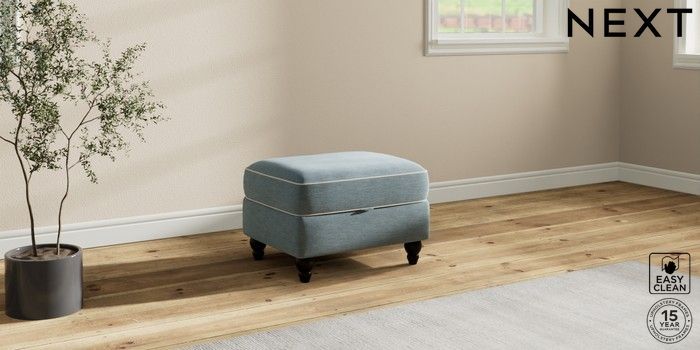 7.3.1 Buy Ashford Highback Storage Footstool Fine Chenille with Contrast Mid Blue and Oyster Low Turned - Dark from the Next UK online shop Click here to use our accessible website