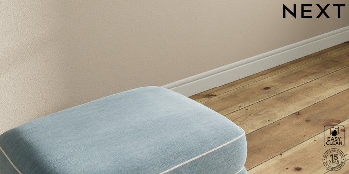 7.3.1 Buy Ashford Highback Storage Footstool Fine Chenille with Contrast Mid Blue and Oyster Modern Turned Metal Cap - Mid from the Next UK online shop Click here to use our accessible website