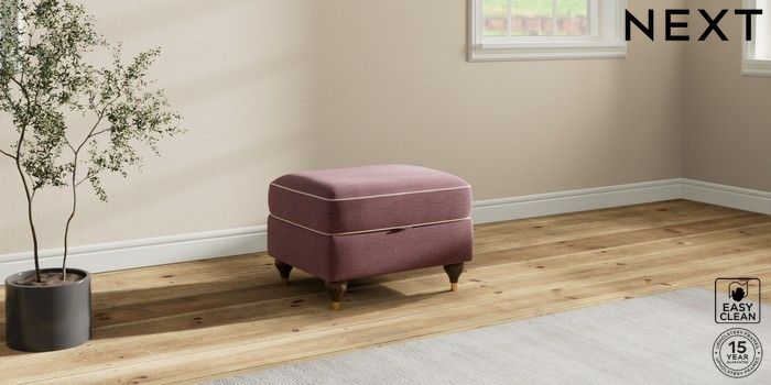 7.3.1 Buy Ashford Highback Storage Footstool Fine Chenille with Contrast Mid Mulberry Purple and Oyster Modern Turned Metal Cap - Mid from the Next UK online shop Click here to use our accessible website