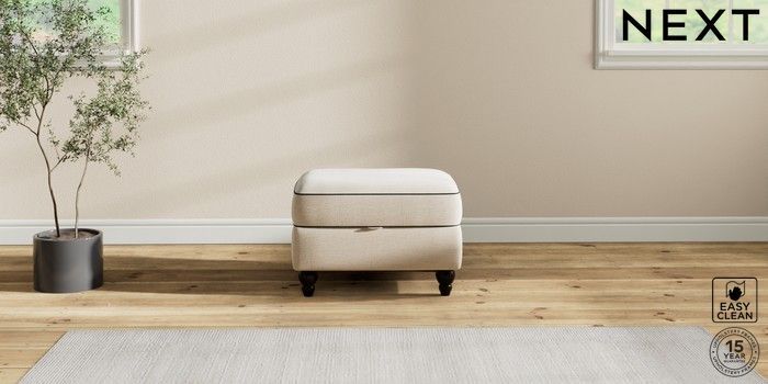 7.3.1 Buy Ashford Highback Storage Footstool Fine Chenille with Contrast Oyster and Black Low Turned - Dark from the Next UK online shop Click here to use our accessible website
