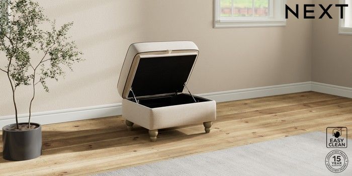 7.3.1 Buy Ashford Highback Storage Footstool Fine Chenille with Contrast Oyster and Chocolate Brown Low Turned - Light from the Next UK online shop Click here to use our accessible website