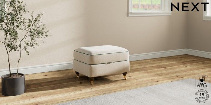 7.3.1 Buy Ashford Highback Storage Footstool Fine Chenille with Contrast Oyster and Dark Juniper Green Castor - Mid from the Next UK online shop Click here to use our accessible website