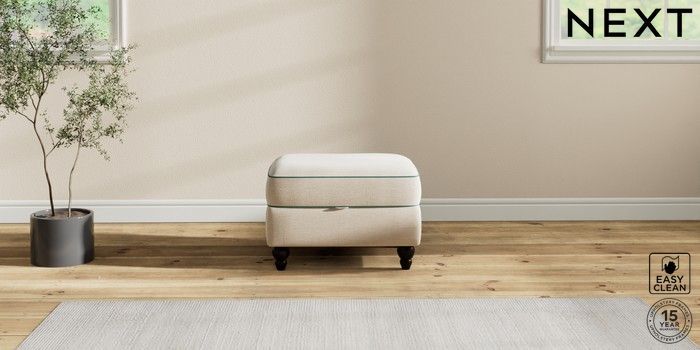 7.3.1 Buy Ashford Highback Storage Footstool Fine Chenille with Contrast Oyster and Dark Juniper Green Low Turned - Dark from the Next UK online shop Click here to use our accessible website