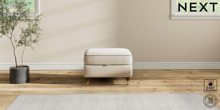 7.3.1 Buy Ashford Highback Storage Footstool Fine Chenille with Contrast Oyster and Mid Khaki Green Castor - Mid from the Next UK online shop Click here to use our accessible website