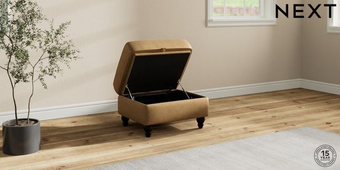 6.12.1 Buy Ashford Highback Storage Footstool Luxe Chenille Honey Yellow Low Turned - Dark from the Next UK online shop Click here to use our accessible website