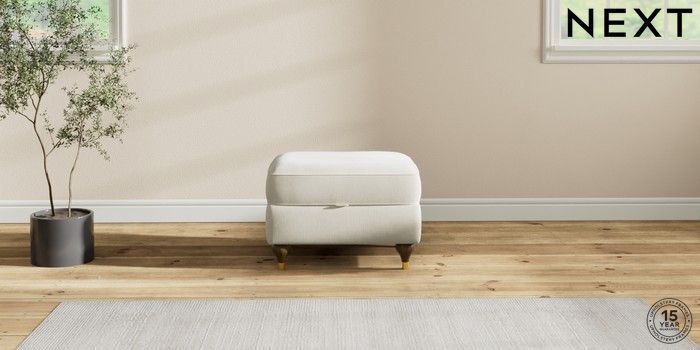 7.0.3 Buy Ashford Highback Storage Footstool Luxe Chenille Oyster Modern Turned Metal Cap - Mid from the Next UK online shop Click here to use our accessible website