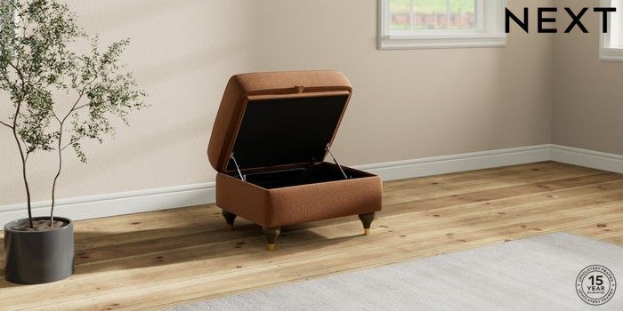 6.12.1 Buy Ashford Highback Storage Footstool Ripple Chenille Mid Rust Brown Modern Turned Metal Cap - Mid from the Next UK online shop Click here to use our accessible website