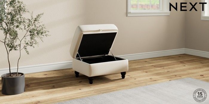 6.12.1 Buy Ashford Highback Storage Footstool Ripple Chenille Oyster Low Turned - Dark from the Next UK online shop Click here to use our accessible website
