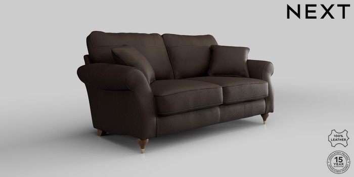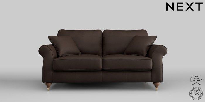 6.12.1 Buy Ashford Leather 2 Seater Sofa Turin Leather Dark Brown Modern Turned Metal Cap - Mid from the Next UK online shop Click here to use our accessible website