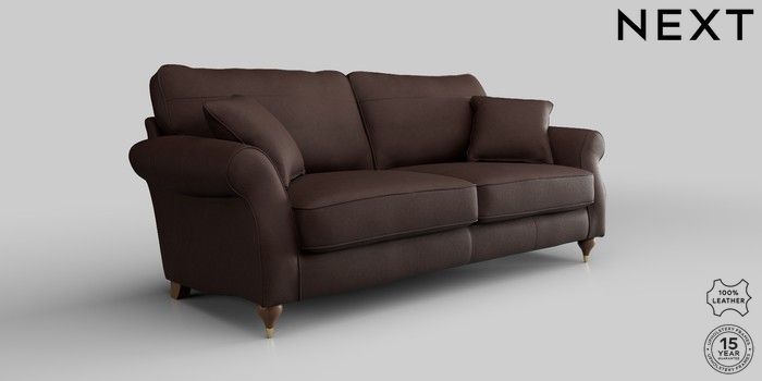 6.12.1 Buy Ashford Leather 3 Seater Sofa Rustic Leather Dark Brown Modern Turned Metal Cap - Mid from the Next UK online shop Click here to use our accessible website