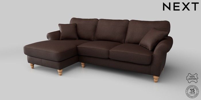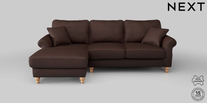 6.12.1 Buy Ashford Leather Medium Sofa Chaise - Left Hand Rustic Leather Dark Brown Low Turned - Light from the Next UK online shop Click here to use our accessible website