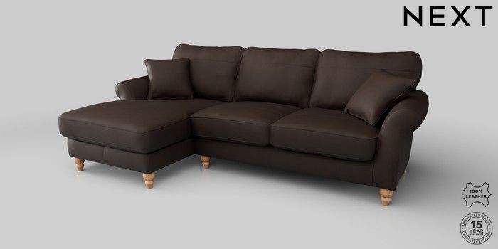6.12.1 Buy Ashford Leather Medium Sofa Chaise - Left Hand Turin Leather Dark Brown Low Turned - Light from the Next UK online shop Click here to use our accessible website