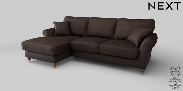 6.12.1 Buy Ashford Leather Medium Sofa Chaise - Left Hand Turin Leather Dark Brown Modern Turned Metal Cap - Mid from the Next UK online shop Click here to use our accessible website