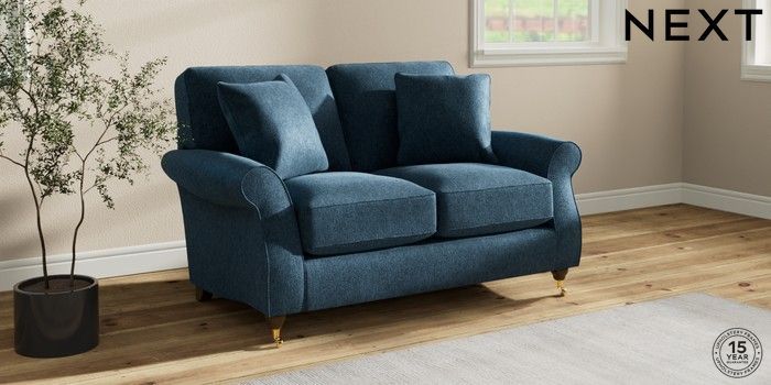 6.12.1 Buy Ashford Relaxed Sit 2 Seater Small Sofa Cotswold Chenille Dark Blue Castor - Mid from the Next UK online shop Click here to use our accessible website
