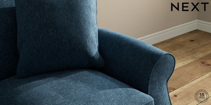 6.12.1 Buy Ashford Relaxed Sit 2 Seater Small Sofa Cotswold Chenille Dark Blue Modern Turned Metal Cap - Mid from the Next UK online shop Click here to use our accessible website