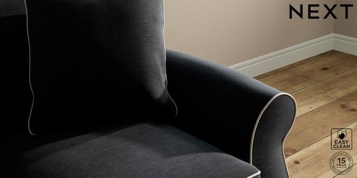 7.3.1 Buy Ashford Relaxed Sit 2 Seater Small Sofa Fine Chenille with Contrast Black and Oyster Low Turned - Light from the Next UK online shop Click here to use our accessible website