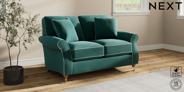 7.3.1 Buy Ashford Relaxed Sit 2 Seater Small Sofa Fine Chenille with Contrast Dark Juniper Green and Oyster Castor - Light from the Next UK online shop Click here to use our accessible website