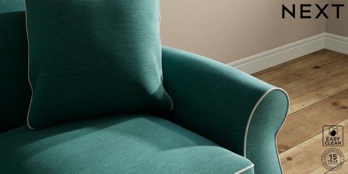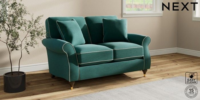 7.3.1 Buy Ashford Relaxed Sit 2 Seater Small Sofa Fine Chenille with Contrast Dark Juniper Green and Oyster Modern Turned Metal Cap - Mid from the Next UK online shop Click here to use our accessible website