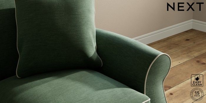 7.3.1 Buy Ashford Relaxed Sit 2 Seater Small Sofa Fine Chenille with Contrast Mid Khaki Green and Oyster Castor - Mid from the Next UK online shop Click here to use our accessible website