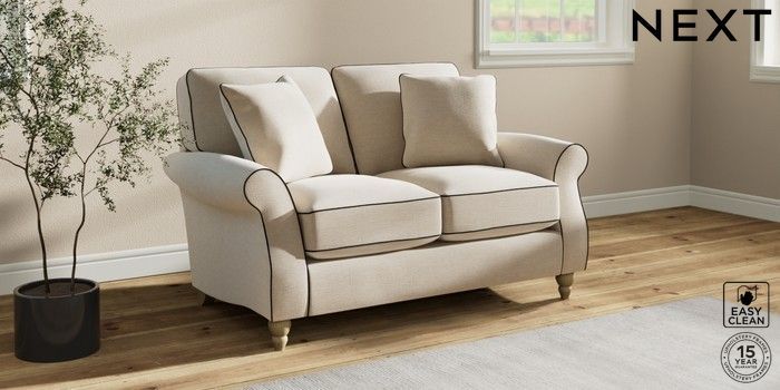 7.3.1 Buy Ashford Relaxed Sit 2 Seater Small Sofa Fine Chenille with Contrast Oyster and Black Low Turned - Light from the Next UK online shop Click here to use our accessible website