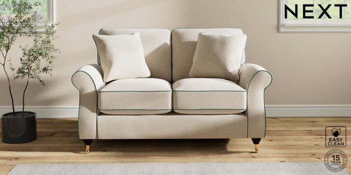 7.3.1 Buy Ashford Relaxed Sit 2 Seater Small Sofa Fine Chenille with Contrast Oyster and Dark Juniper Green Castor - Dark from the Next UK online shop Click here to use our accessible website