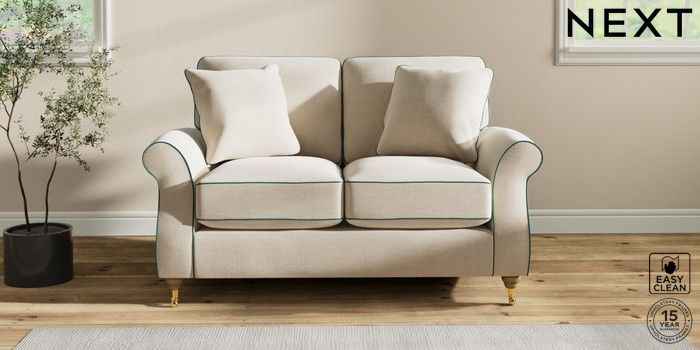7.3.1 Buy Ashford Relaxed Sit 2 Seater Small Sofa Fine Chenille with Contrast Oyster and Dark Juniper Green Castor - Light from the Next UK online shop Click here to use our accessible website
