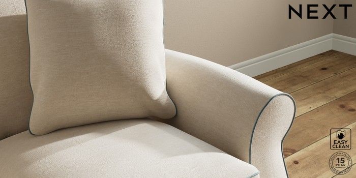 7.3.1 Buy Ashford Relaxed Sit 2 Seater Small Sofa Fine Chenille with Contrast Oyster and Mid Blue Low Turned - Light from the Next UK online shop Click here to use our accessible website
