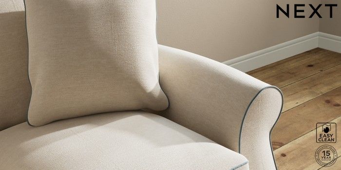 7.3.1 Buy Ashford Relaxed Sit 2 Seater Small Sofa Fine Chenille with Contrast Oyster and Mid Blue Modern Turned Metal Cap - Mid from the Next UK online shop Click here to use our accessible website