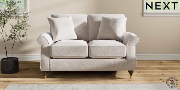 7.2.6 Buy Ashford Relaxed Sit 2 Seater Small Sofa Multi Weave Oyster Modern Turned Metal Cap - Mid from the Next UK online shop Click here to use our accessible website