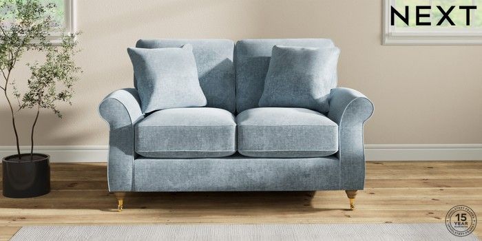 7.2.6 Buy Ashford Relaxed Sit 2 Seater Small Sofa Plush Chenille Light Blue Castor - Light from the Next UK online shop Click here to use our accessible website