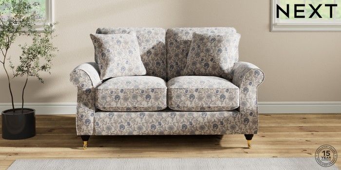 7.3.1 Buy Ashford Relaxed Sit 2 Seater Small Sofa Relaxed Linen Look Print Woodblock Floral Blue Castor - Dark from the Next UK online shop Click here to use our accessible website