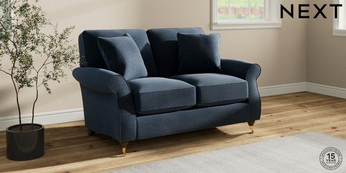 6.12.1 Buy Ashford Relaxed Sit 2 Seater Small Sofa Ripple Chenille Dark Blue Castor - Mid from the Next UK online shop Click here to use our accessible website