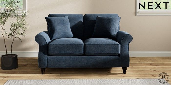 6.12.1 Buy Ashford Relaxed Sit 2 Seater Small Sofa Ripple Chenille Dark Blue Low Turned - Dark from the Next UK online shop Click here to use our accessible website