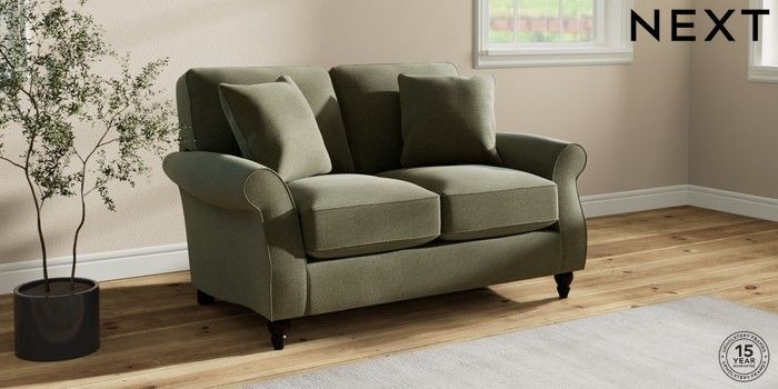 6.12.1 Buy Ashford Relaxed Sit 2 Seater Small Sofa Ripple Chenille Mid Moss Green Low Turned - Dark from the Next UK online shop Click here to use our accessible website