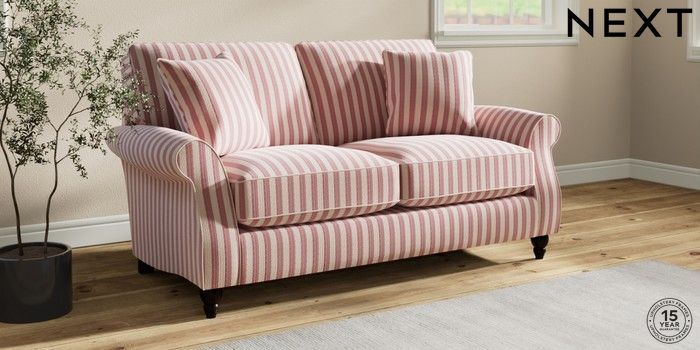 7.3.1 Buy Ashford Relaxed Sit 2 Seater Sofa Bold Chenille Stripe Dark Pink Low Turned - Dark from the Next UK online shop
